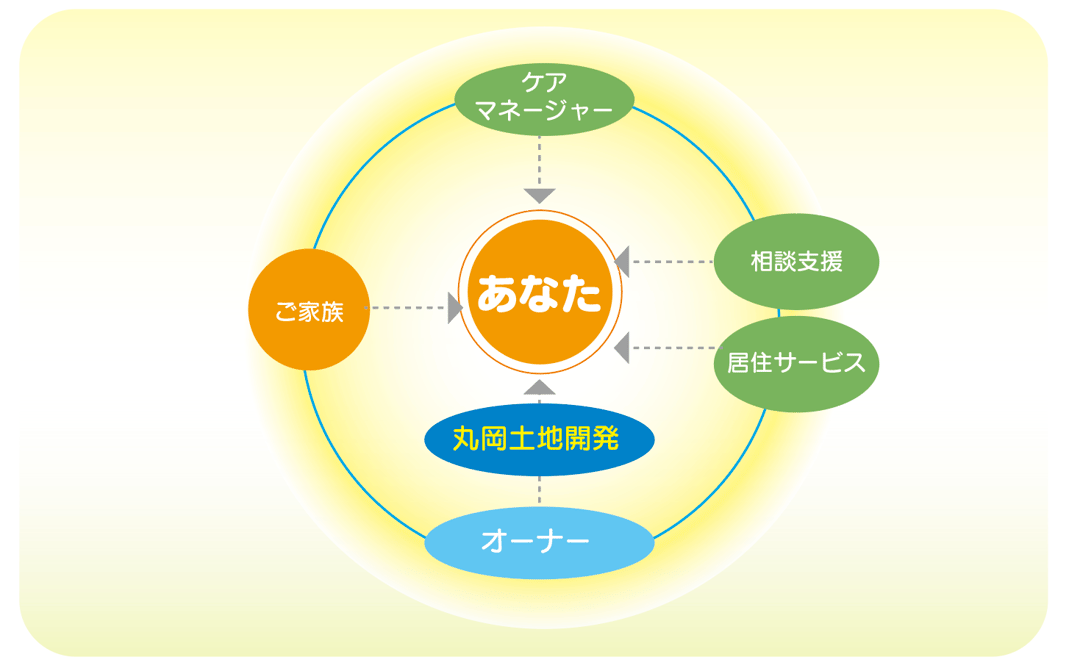 居住支援とは、障がいのある方やご高齢の方、子育て家庭、支援が必要な若者等、住宅の確保が難しい方の入居とその後の安定した生活を維持するためのお手伝いをすることです。当社では、例えば、ご入居中の方でお困りのことがあれば、関係機関と連絡調整し、生活が安定できるようなお手伝いを致します。また、住まい探しでお困りの方のお手伝いもしています。
